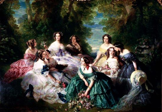 L'Impératrice Eugénie entourée de ses dames d'honneurs au palais de Fontainebleau. Franz Xaver Winterhalter