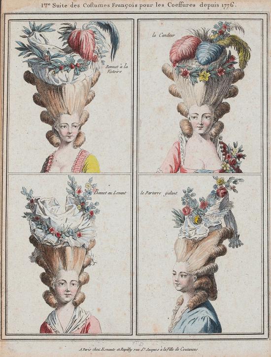 Première suite des costumes français pour les coiffures depuis 1776. Gabriel de Saint-Aubin (d’après)
