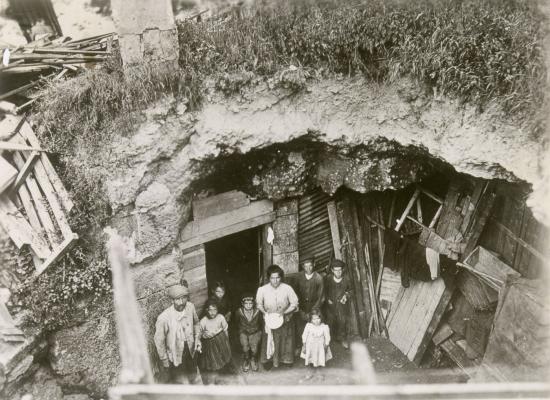 Famille dans un abri militaire